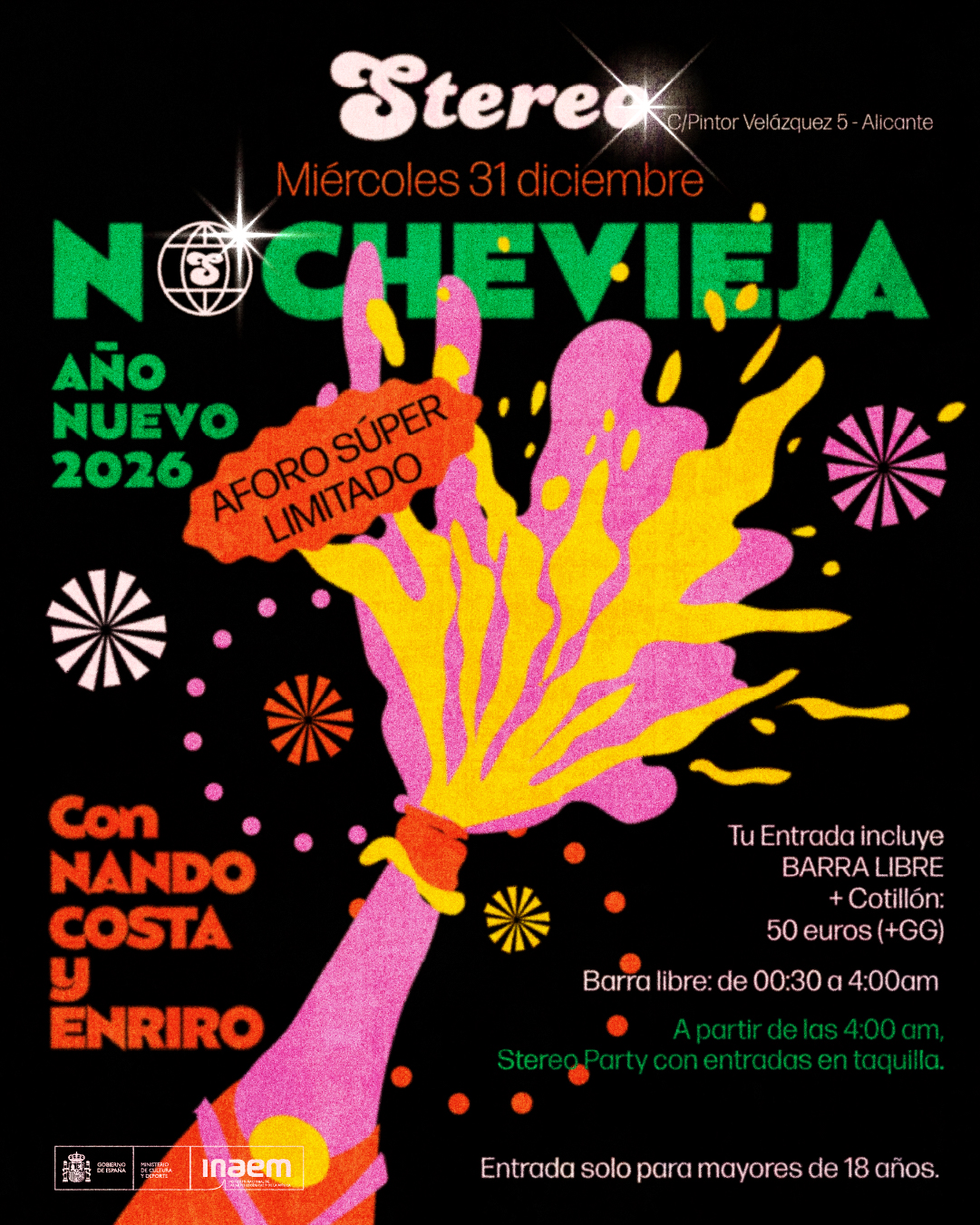 ¡El mejor plan de Nochevieja, siempre está en Stereo! Con Nando Costa y Enriro, la mejor música y barra libre de 00:30h a 04:00am. ...