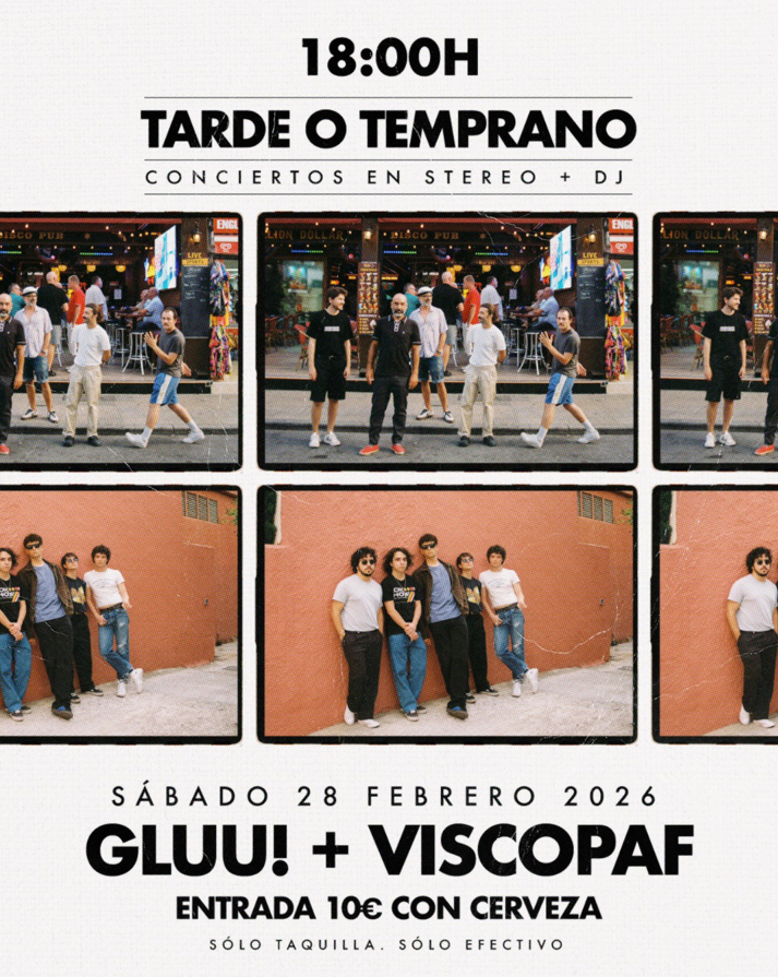 Gluu!+ Viscopaf tocarán en Stereo Alicante el 28 de febrero de 2026. ...